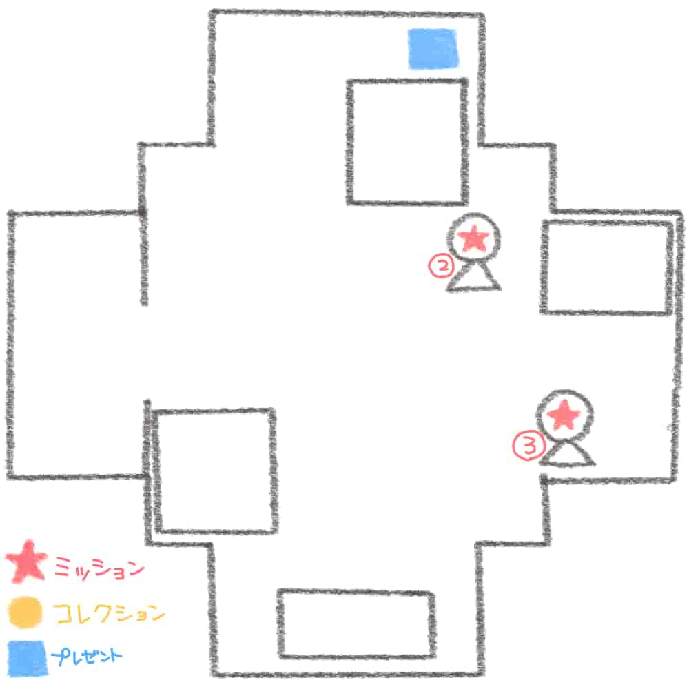 星マークがあるキャラに話しかけ、ミッションを確認しながら謎解きをしていきましょう!