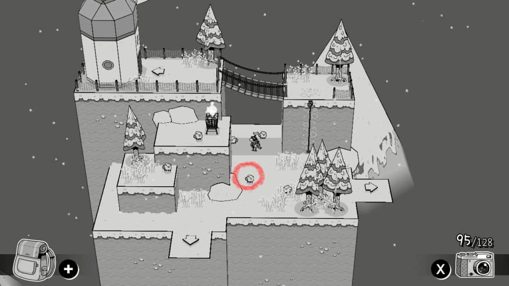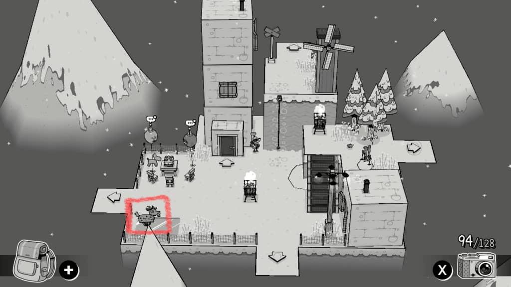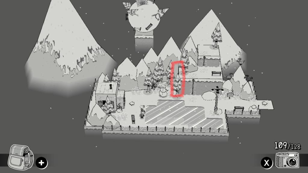登山ブーツをもらってマップ内の山に登り、雪玉の写真を撮影!