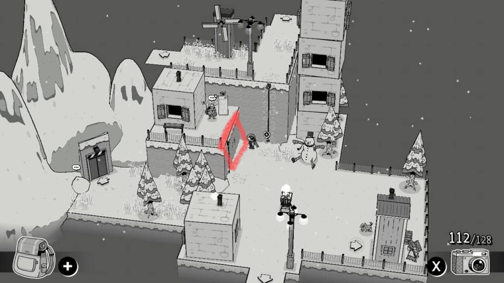 雪だるまは、「思い出の雪玉」「雪だるまを組み合わせる」の2か所で撮影可能!