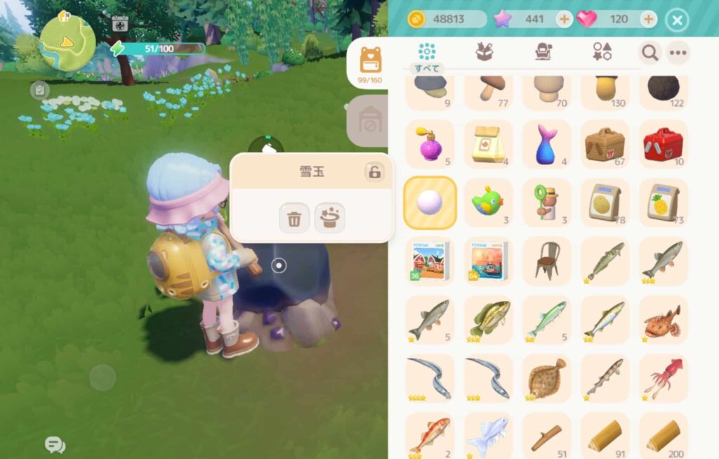 雪が降っていなくても雪玉は取れるアイテムになっているみたいなので、今のうちにコツコツ採集しておきましょう。