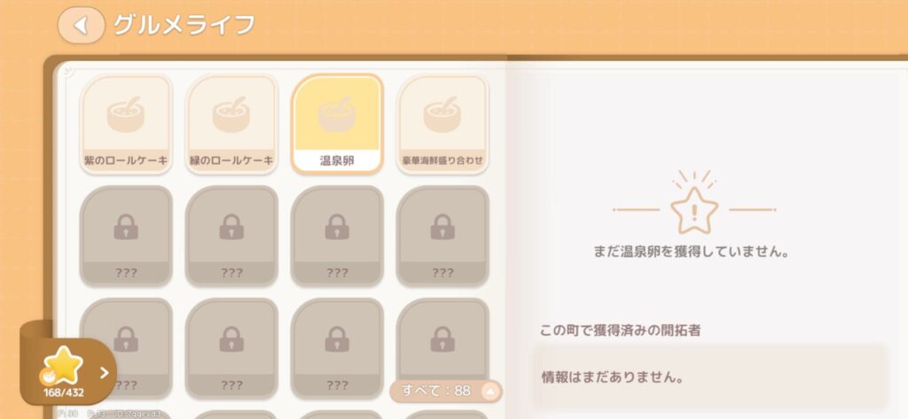 【スノーシーズン1周目では温泉卵のレシピは解放されていません】