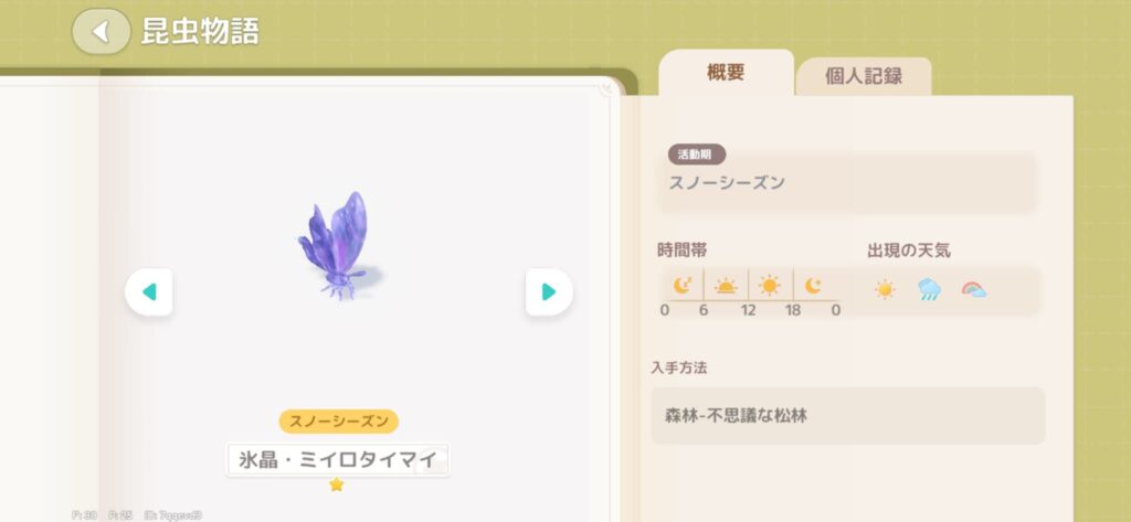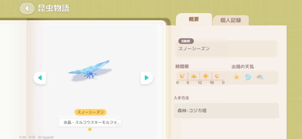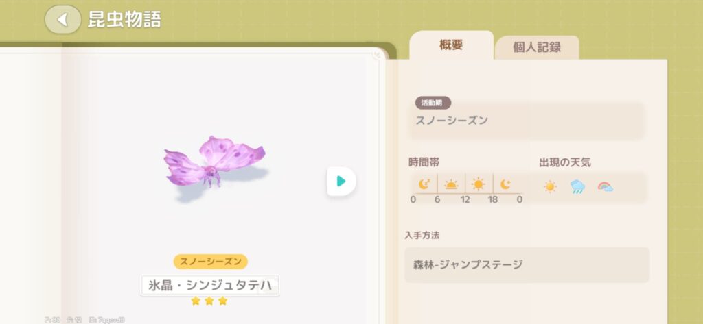4種類の氷晶の蝶の出現場所をまとめたので、まだ捕まえられていない方は参考に虫取りに行ってみてください!