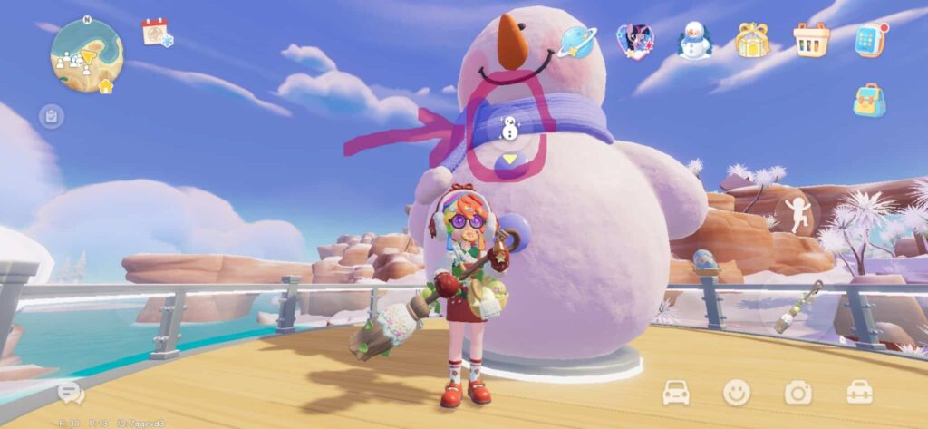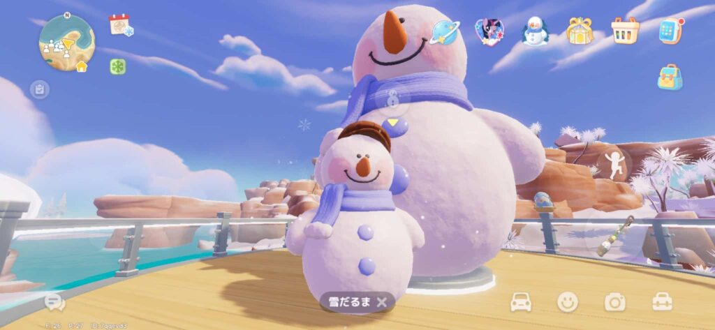 ウィンターランドの建物の上に設置されている雪だるまに近付くと「⛄」アイコンが出現します。